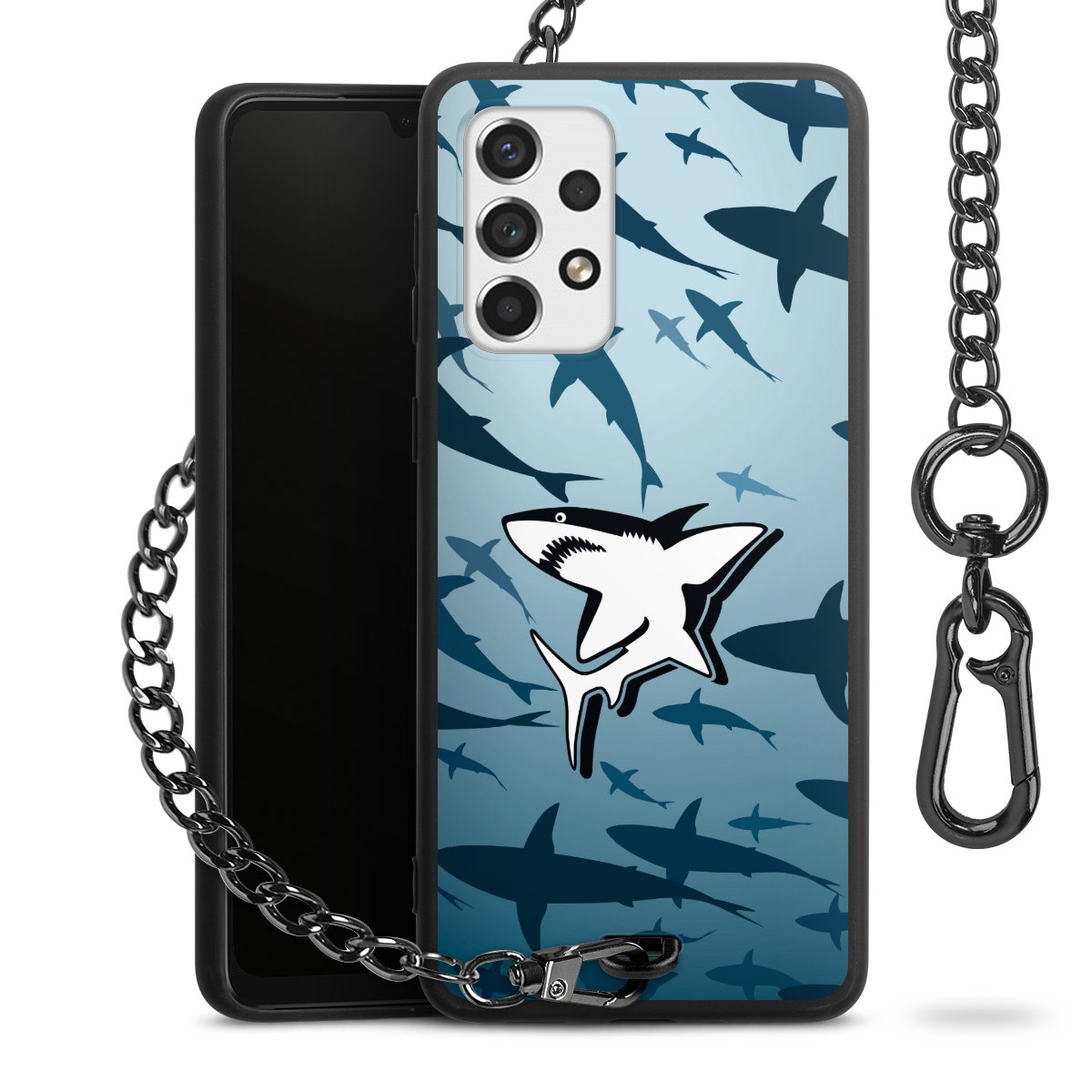 • Mattschwarze Handyhülle mit Metallkette