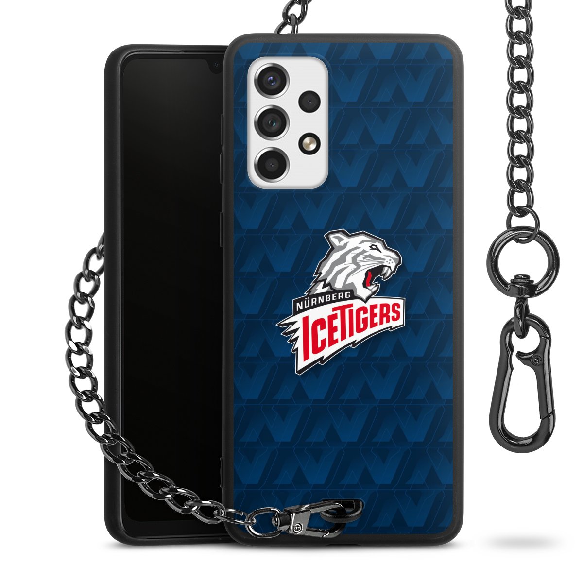 - Mattschwarze Handyhülle mit Metallkette
