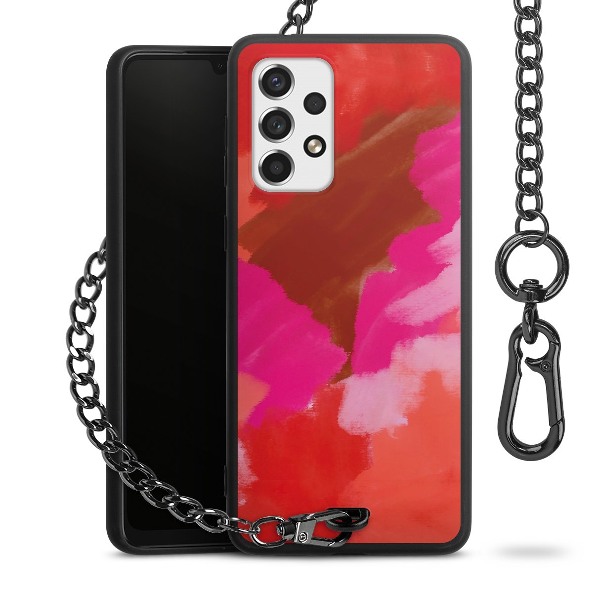 • Mattschwarze Handyhülle mit Metallkette