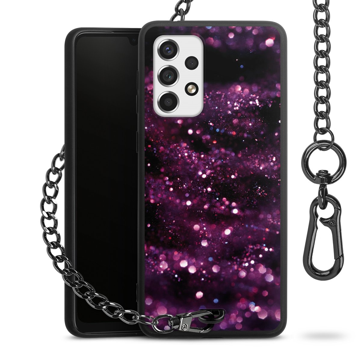 - Mattschwarze Handyhülle mit Metallkette