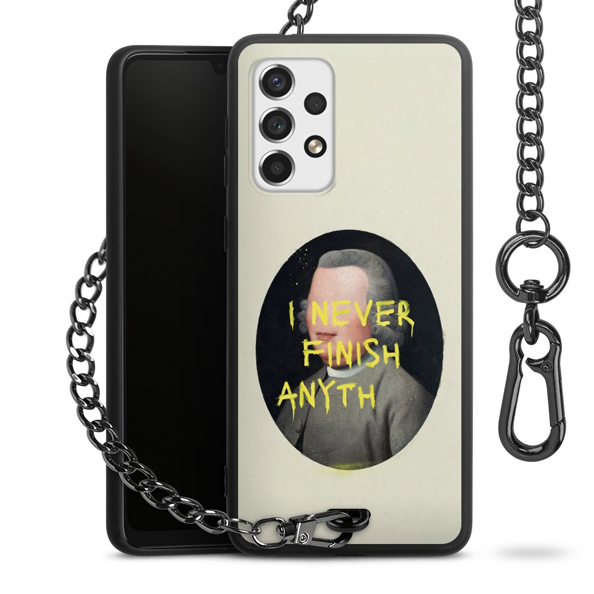 • Mattschwarze Handyhülle mit Metallkette