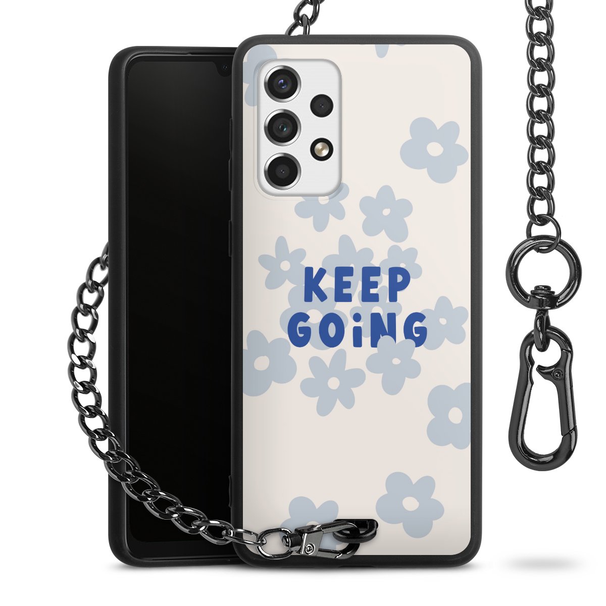 • Mattschwarze Handyhülle mit Metallkette