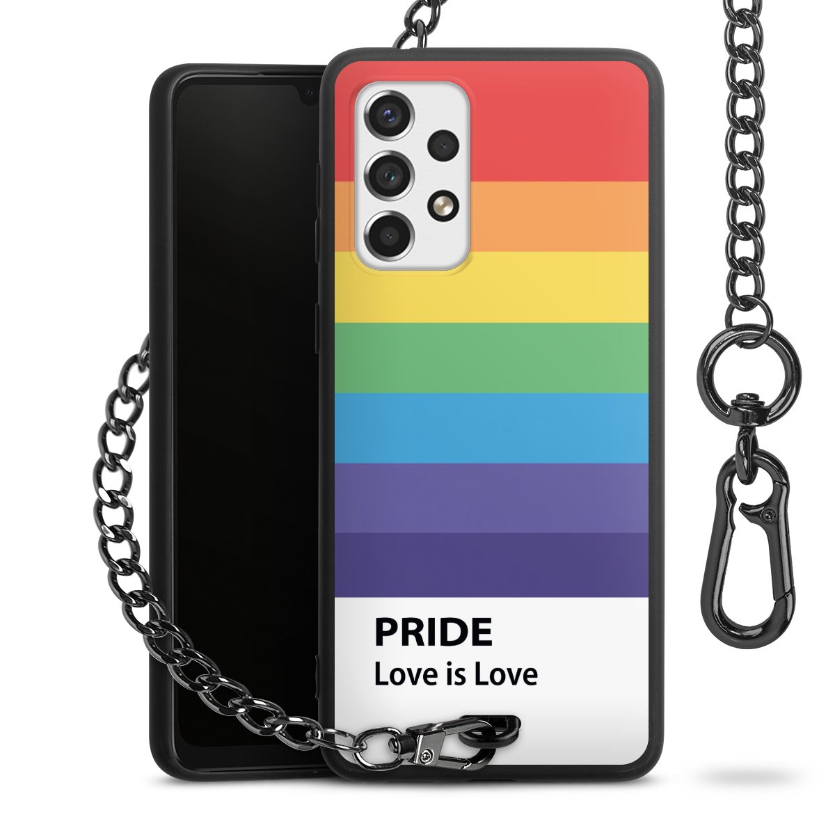 • Mattschwarze Handyhülle mit Metallkette