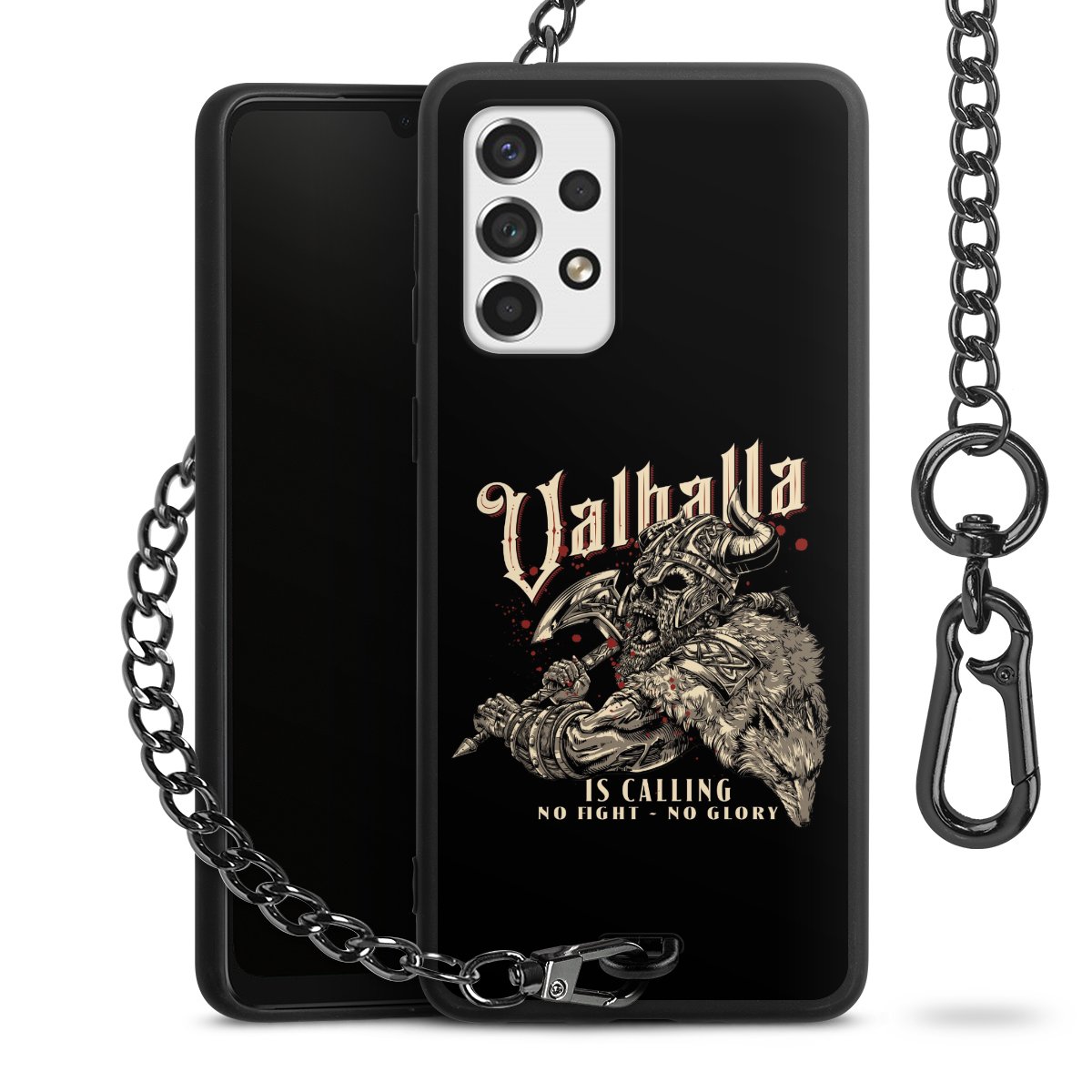 • Mattschwarze Handyhülle mit Metallkette