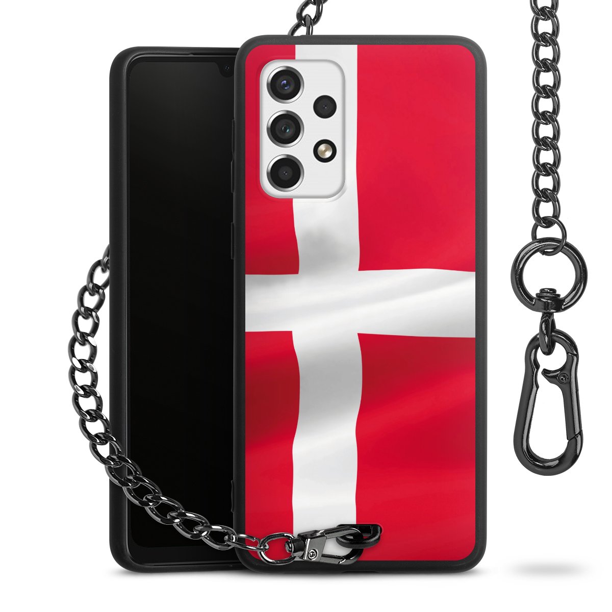 - Mattschwarze Handyhülle mit Metallkette