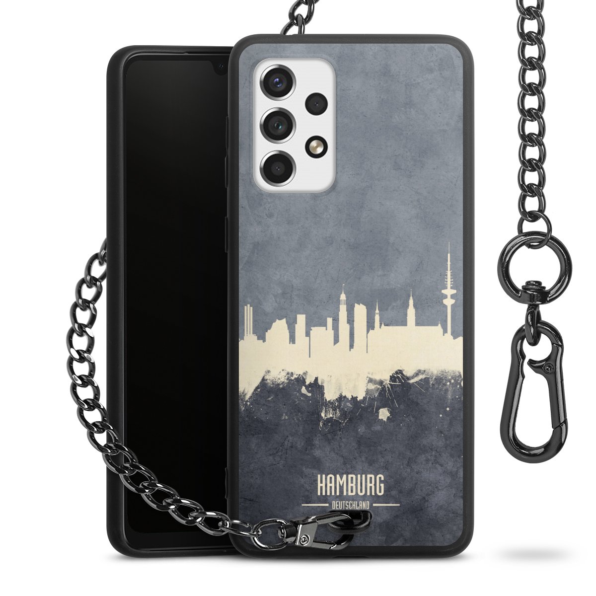 • Mattschwarze Handyhülle mit Metallkette