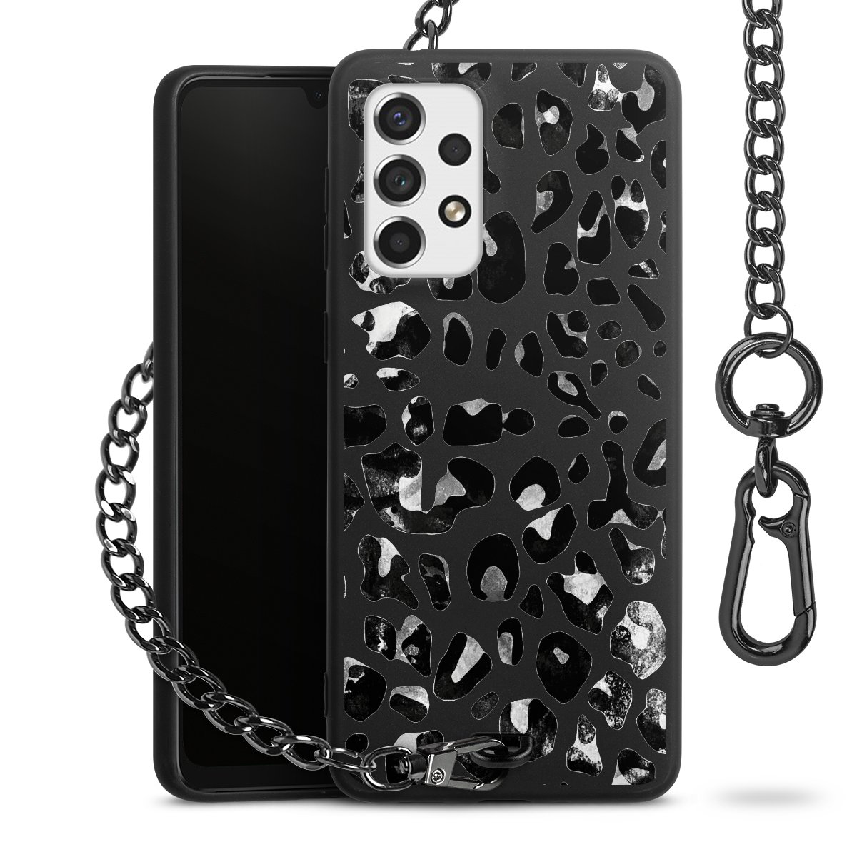 • Mattschwarze Handyhülle mit Metallkette