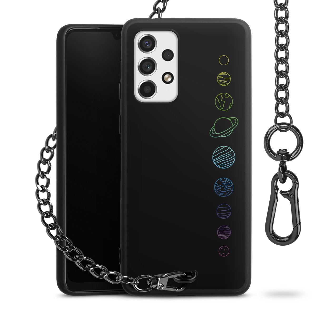 • Mattschwarze Handyhülle mit Metallkette