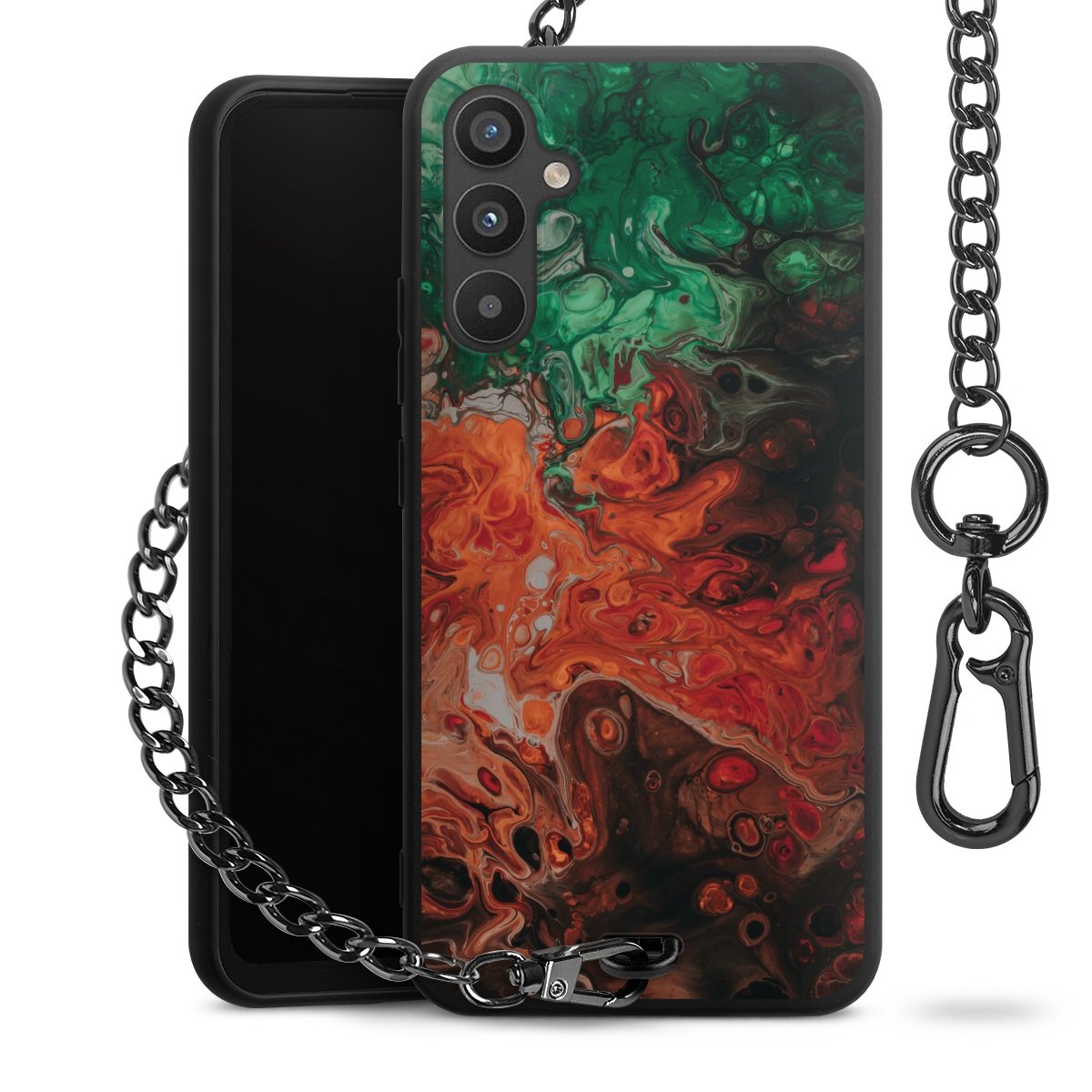 - Mattschwarze Handyhülle mit Metallkette