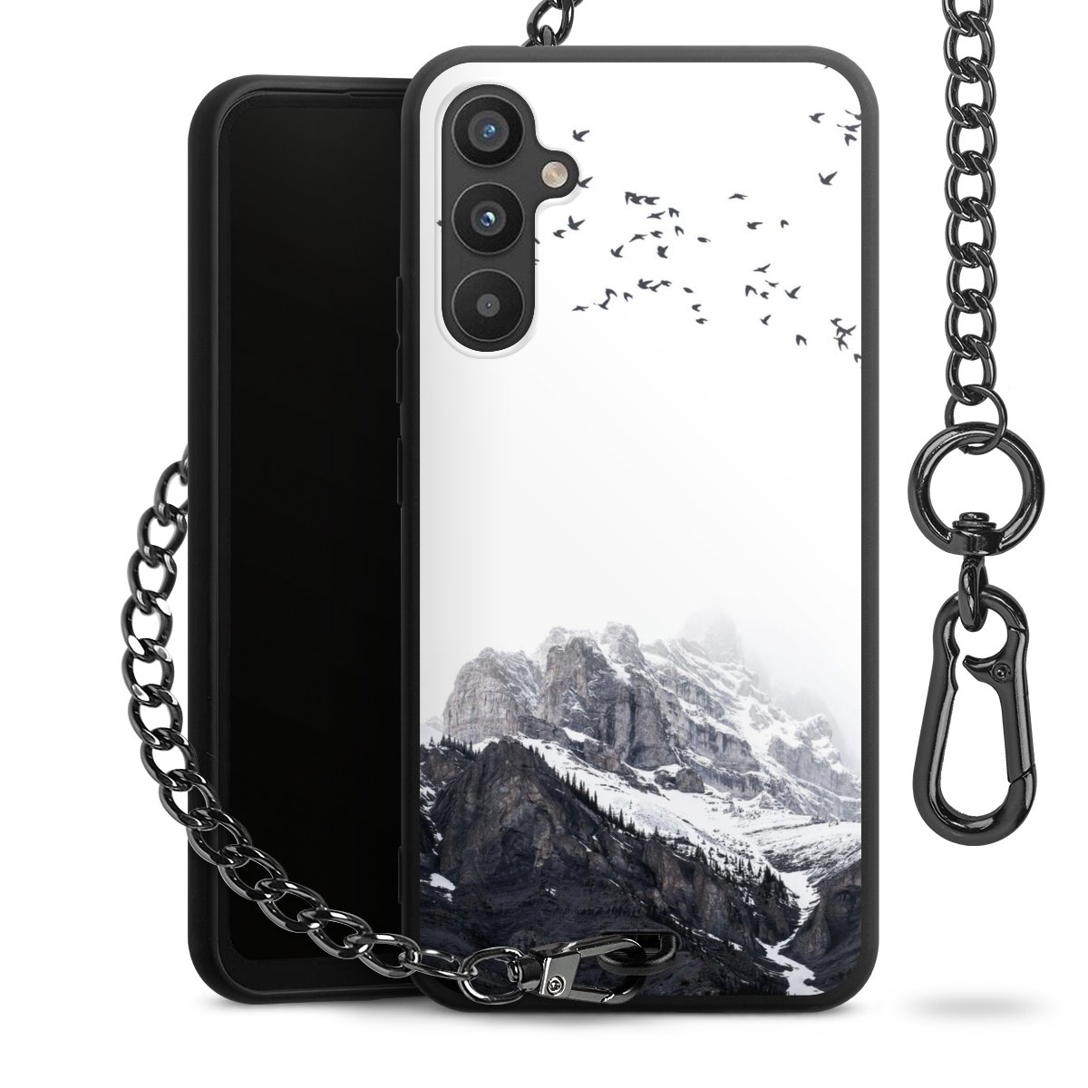 • Mattschwarze Handyhülle mit Metallkette