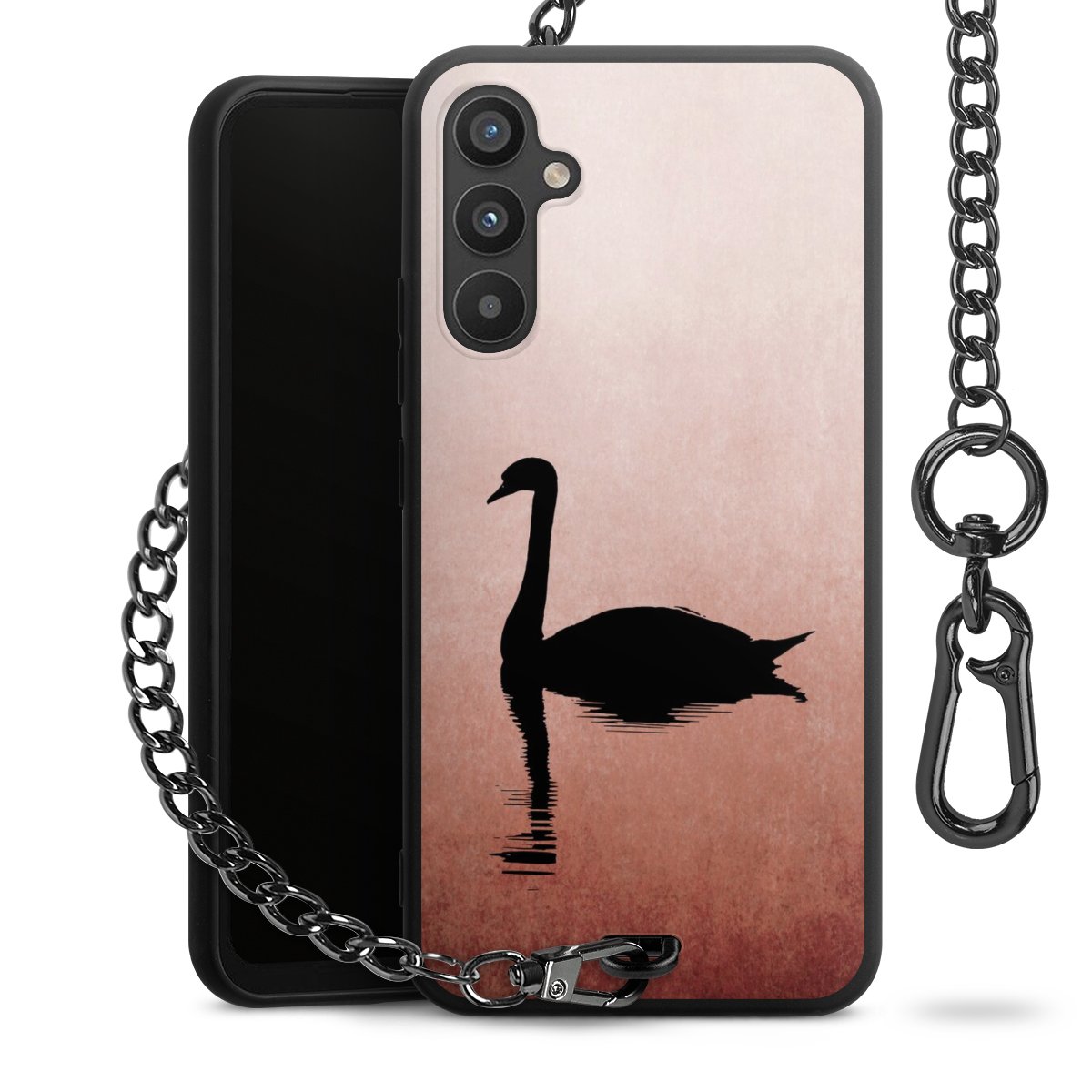 • Mattschwarze Handyhülle mit Metallkette