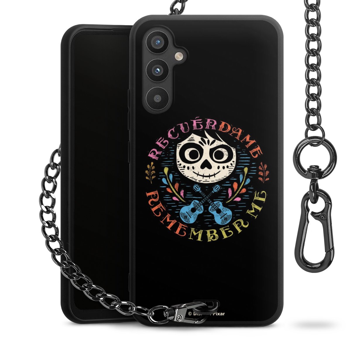 - Mattschwarze Handyhülle mit Metallkette