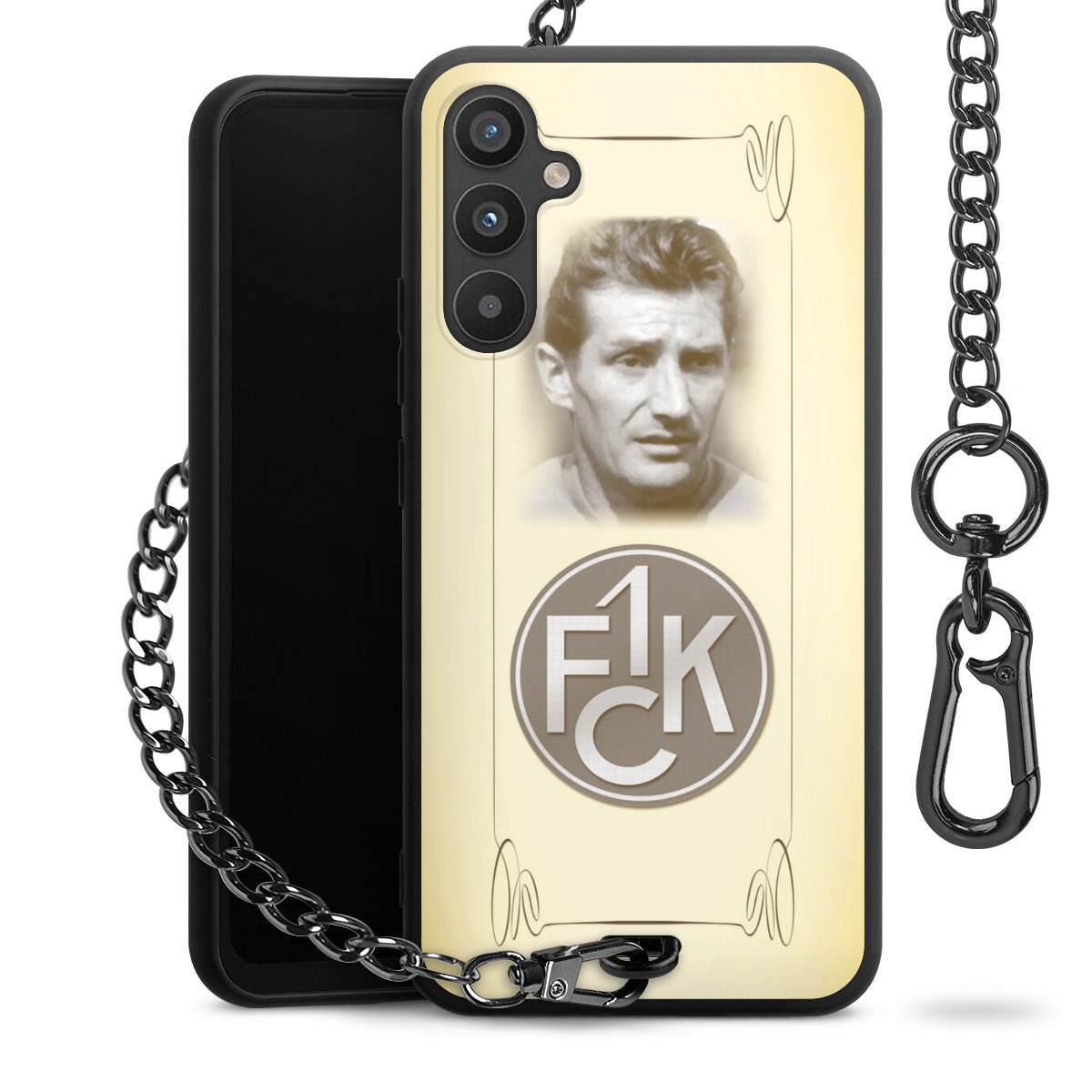 • Mattschwarze Handyhülle mit Metallkette
