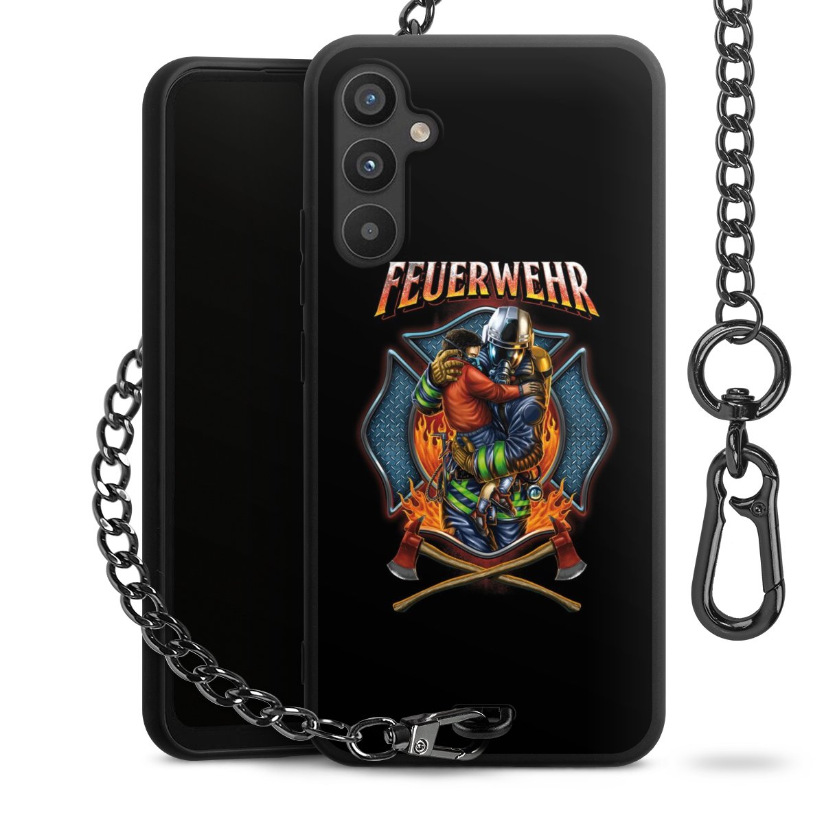 • Mattschwarze Handyhülle mit Metallkette