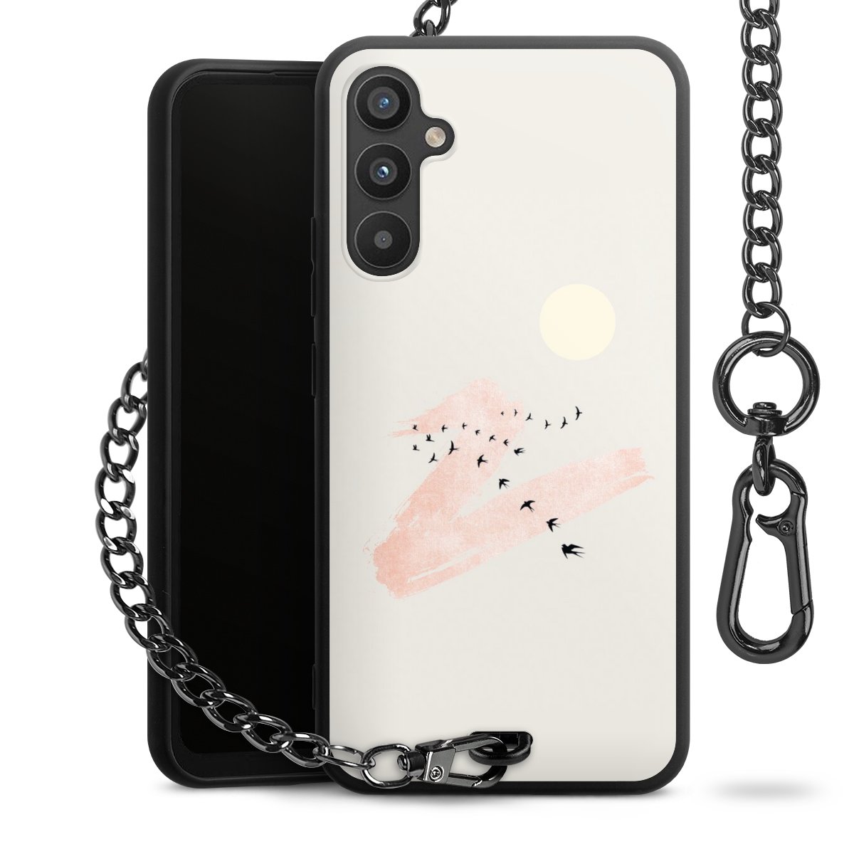 • Mattschwarze Handyhülle mit Metallkette