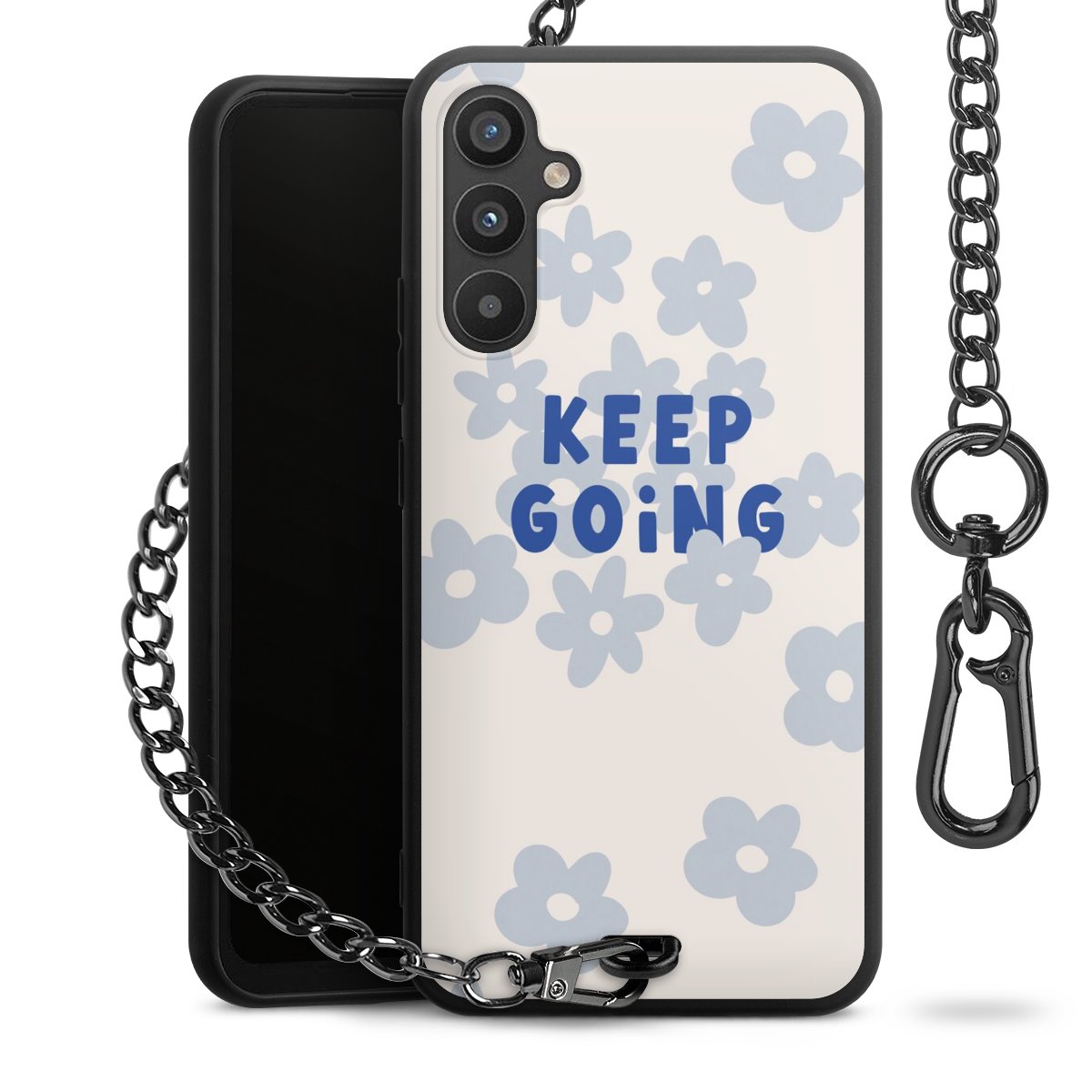 • Mattschwarze Handyhülle mit Metallkette