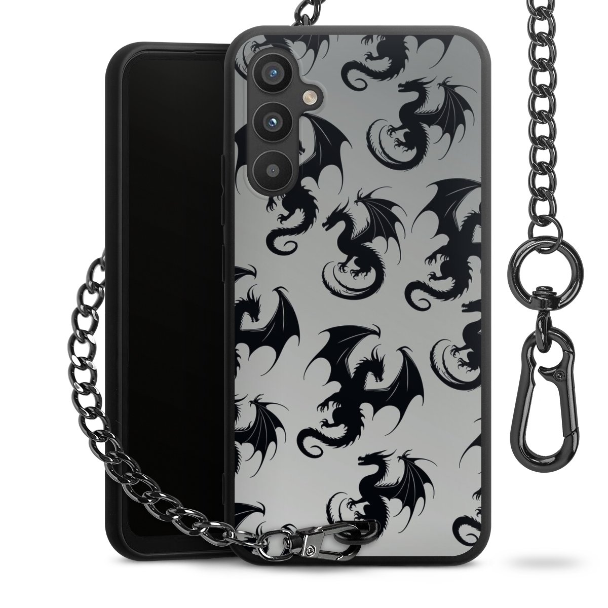 • Mattschwarze Handyhülle mit Metallkette