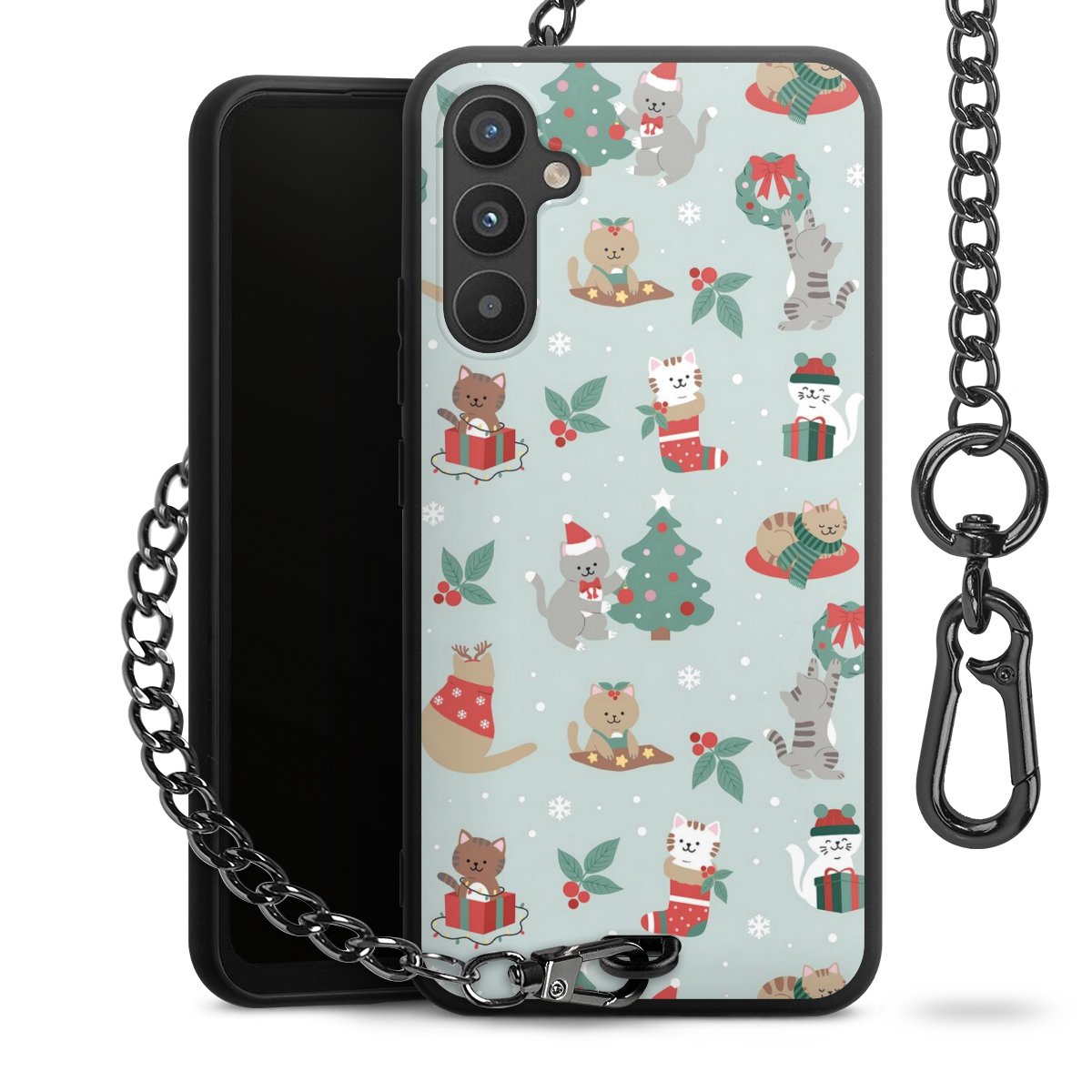 • Mattschwarze Handyhülle mit Metallkette