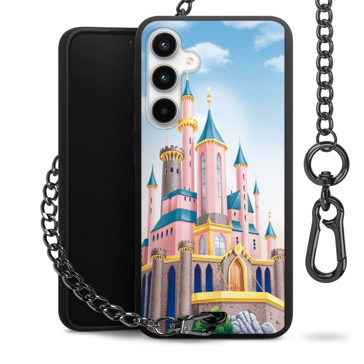 • Mattschwarze Handyhülle mit Metallkette