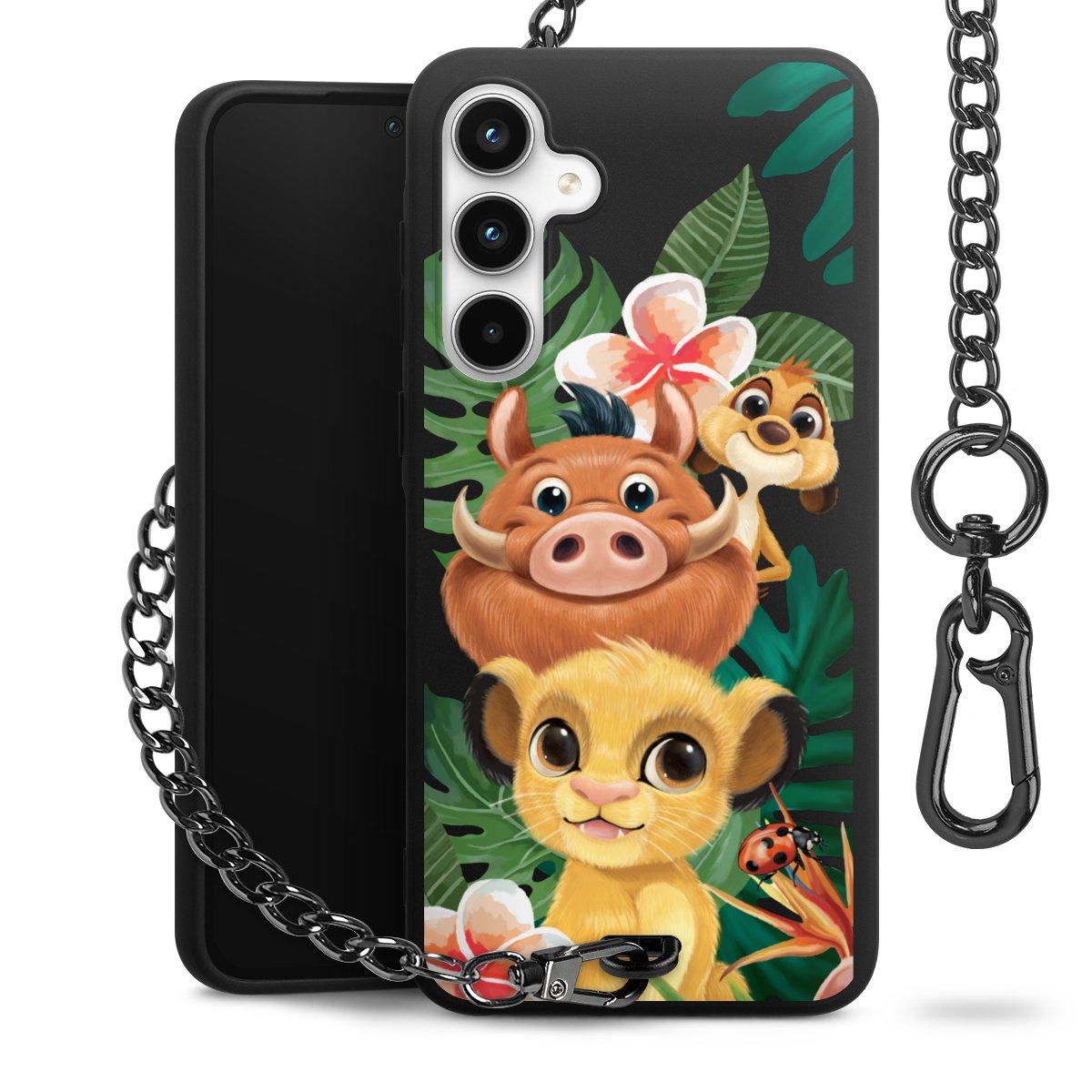 • Mattschwarze Handyhülle mit Metallkette