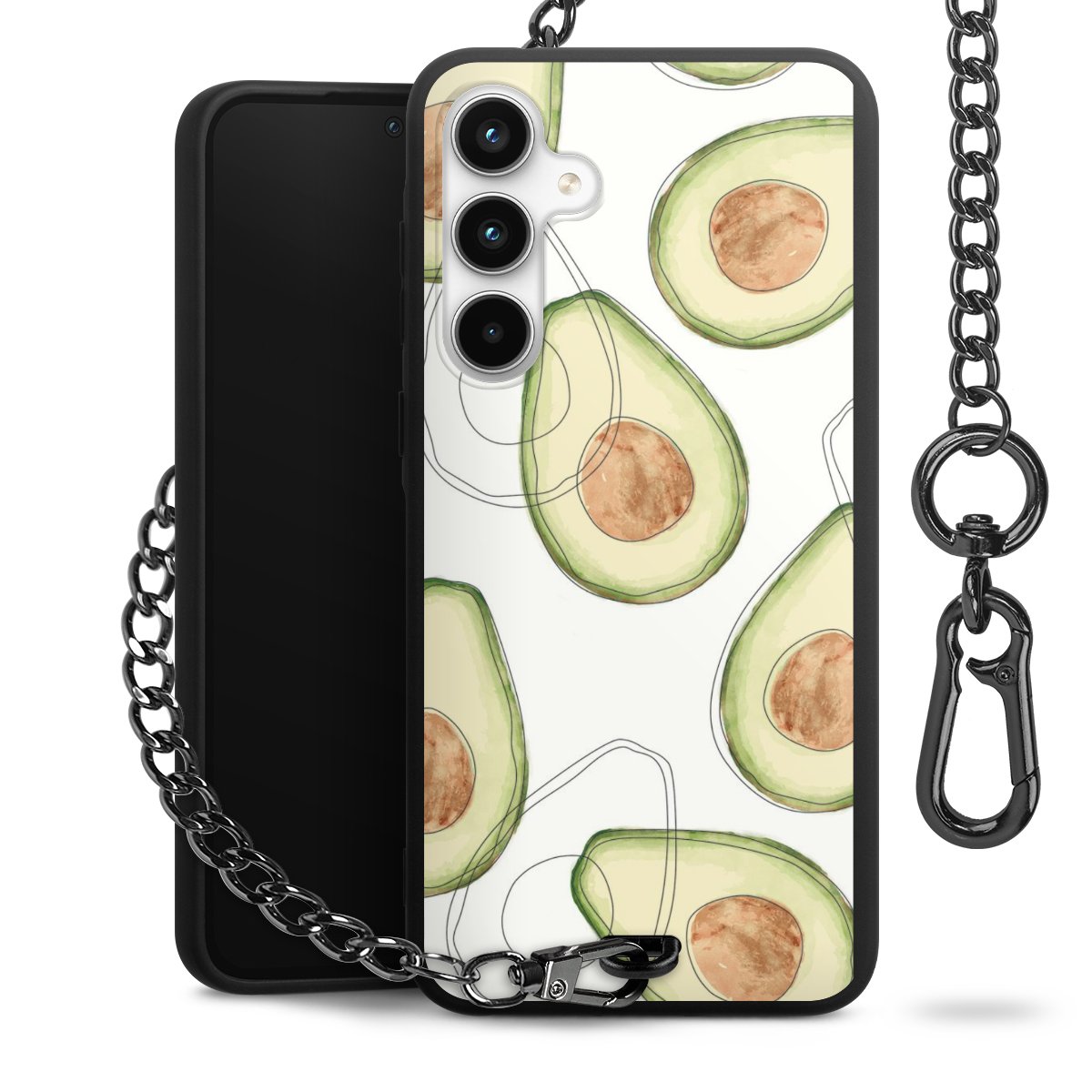 • Mattschwarze Handyhülle mit Metallkette