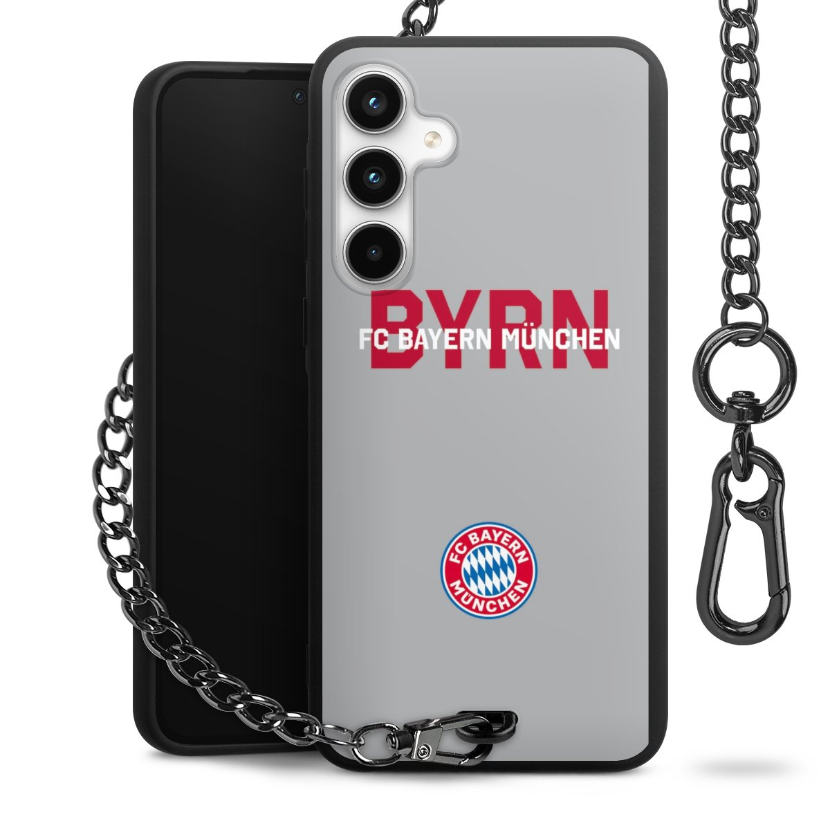 • Mattschwarze Handyhülle mit Metallkette