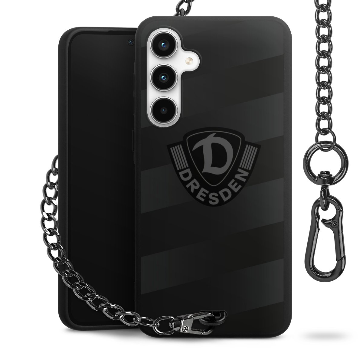 • Mattschwarze Handyhülle mit Metallkette
