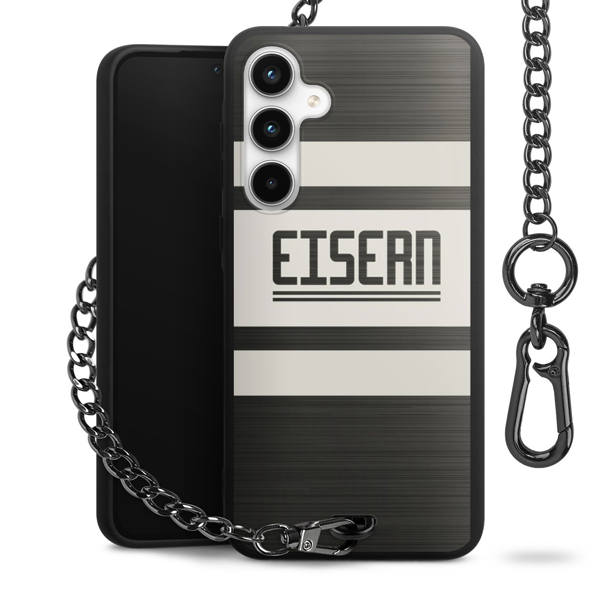 • Mattschwarze Handyhülle mit Metallkette