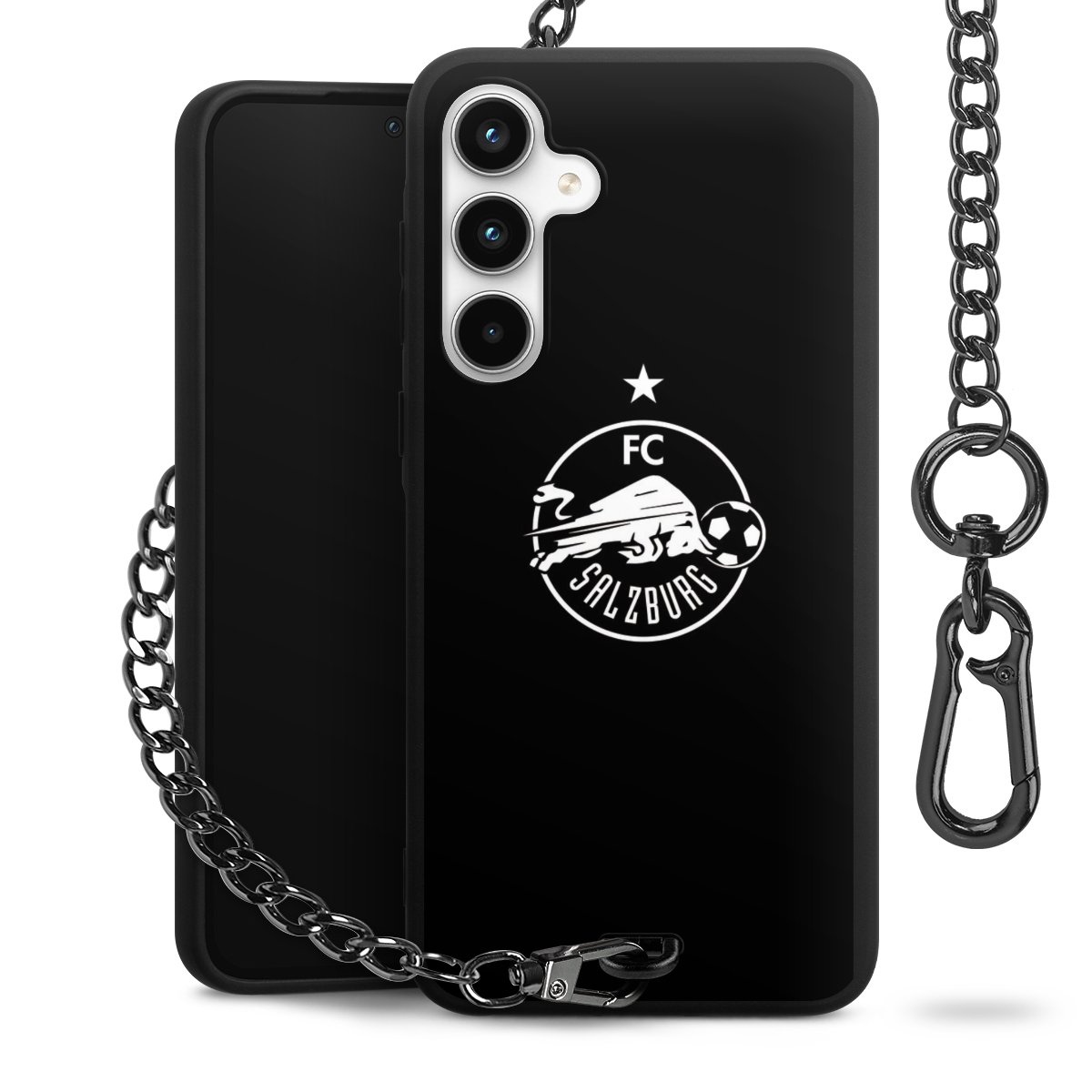 • Mattschwarze Handyhülle mit Metallkette
