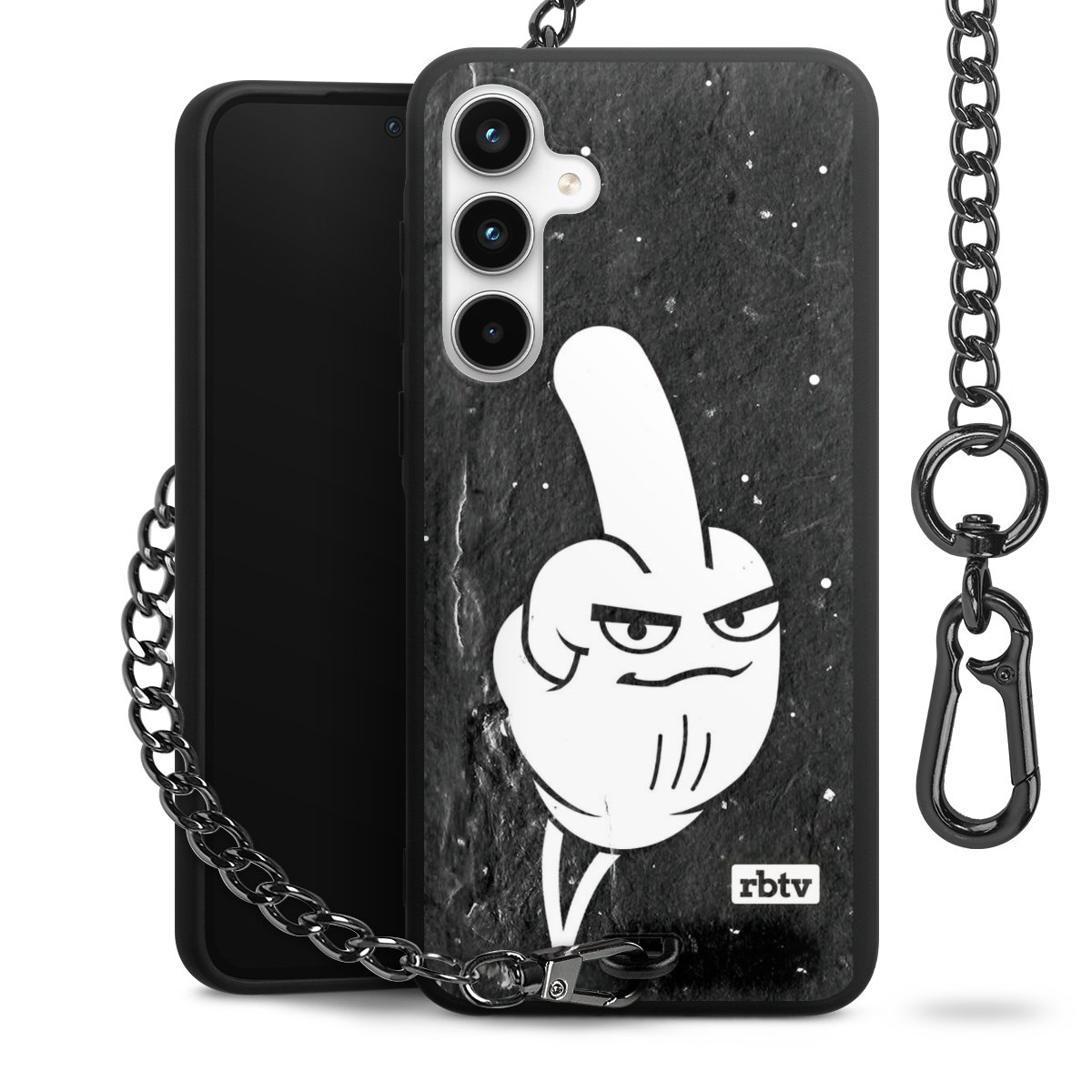 Die mattschwarze Silikon-Handyhülle besteht aus robustem TPU (thermoplastisches Polyurethan). Sie ist flexibel und schützt Dein Smartphone vor Stößen und Kratzern. Die Kette sowie der Karabinerhaken sind aus Metall in Gunmetal-Optik gefertigt. Für dieses Produkt kommen ausschließlich TÜV-geprüfte Materialien zum Einsatz.