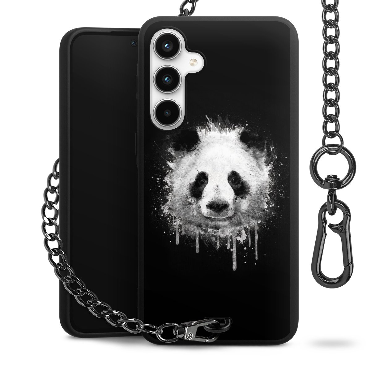 • Mattschwarze Handyhülle mit Metallkette