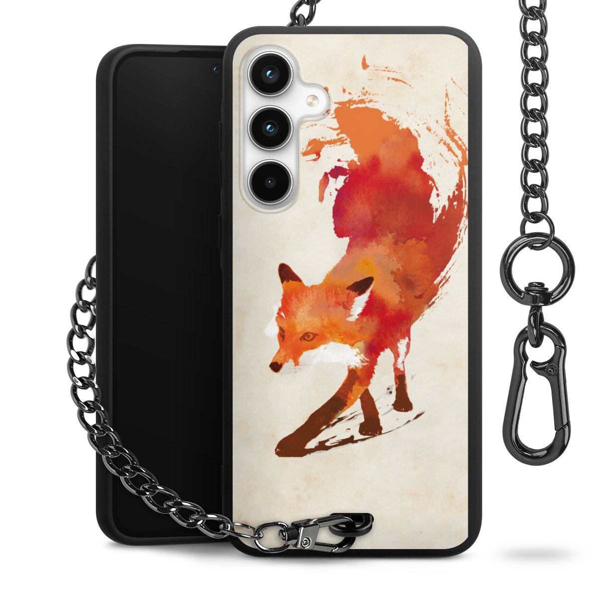 • Mattschwarze Handyhülle mit Metallkette