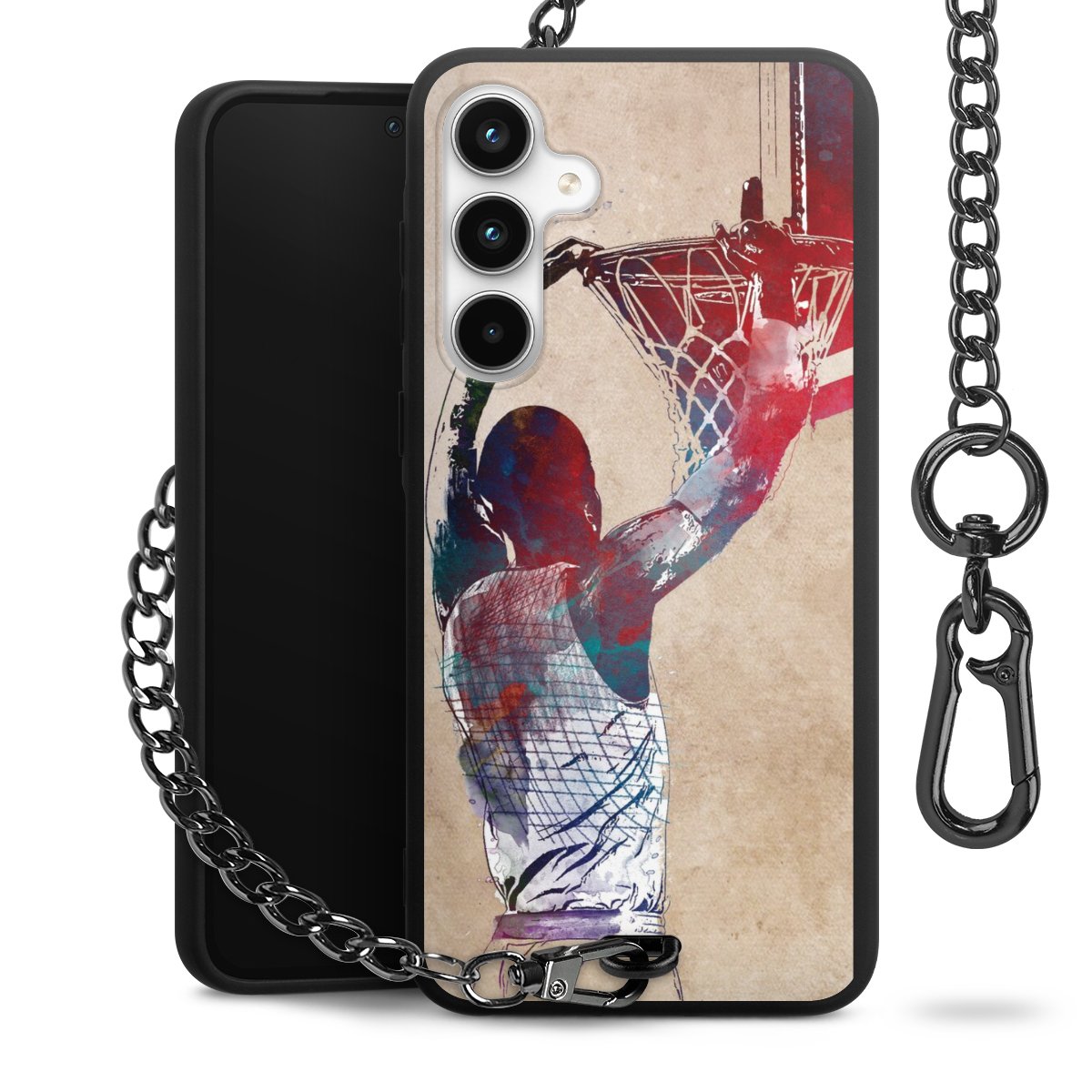 Die mattschwarze Silikon-Handyhülle besteht aus robustem TPU (thermoplastisches Polyurethan). Sie ist flexibel und schützt Dein Smartphone vor Stößen und Kratzern. Die Kette sowie der Karabinerhaken sind aus Metall in Gunmetal-Optik gefertigt. Für dieses Produkt kommen ausschließlich TÜV-geprüfte Materialien zum Einsatz.