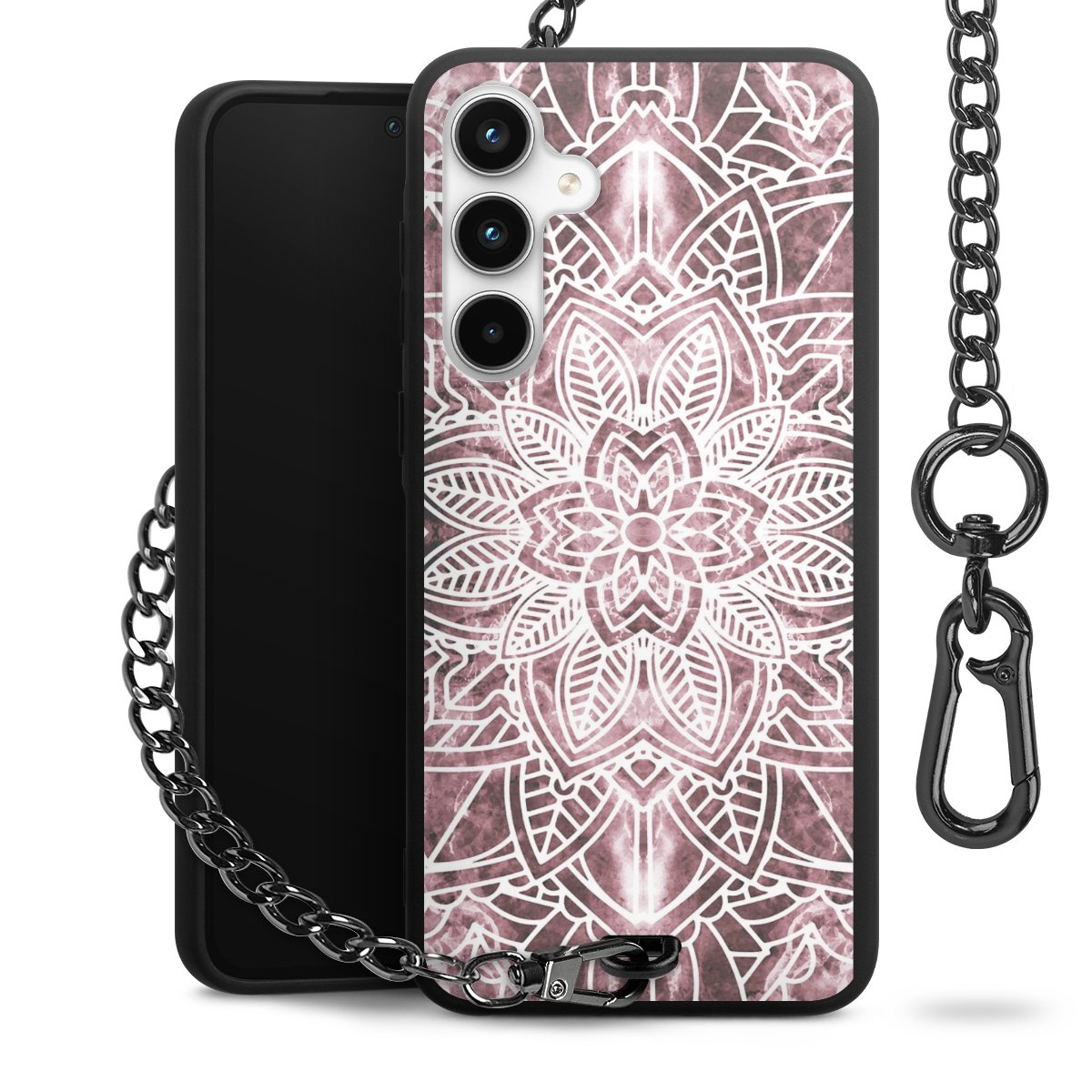 • Mattschwarze Handyhülle mit Metallkette