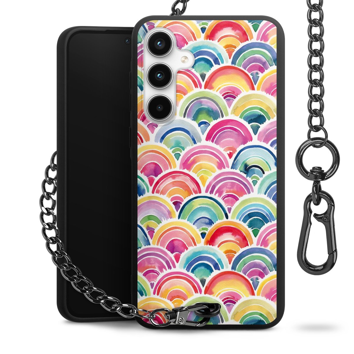 • Mattschwarze Handyhülle mit Metallkette