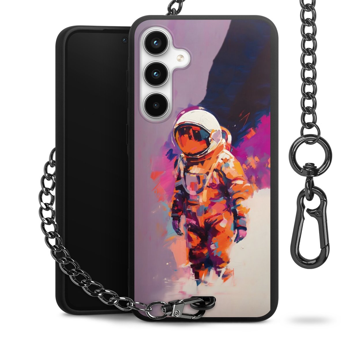 • Mattschwarze Handyhülle mit Metallkette