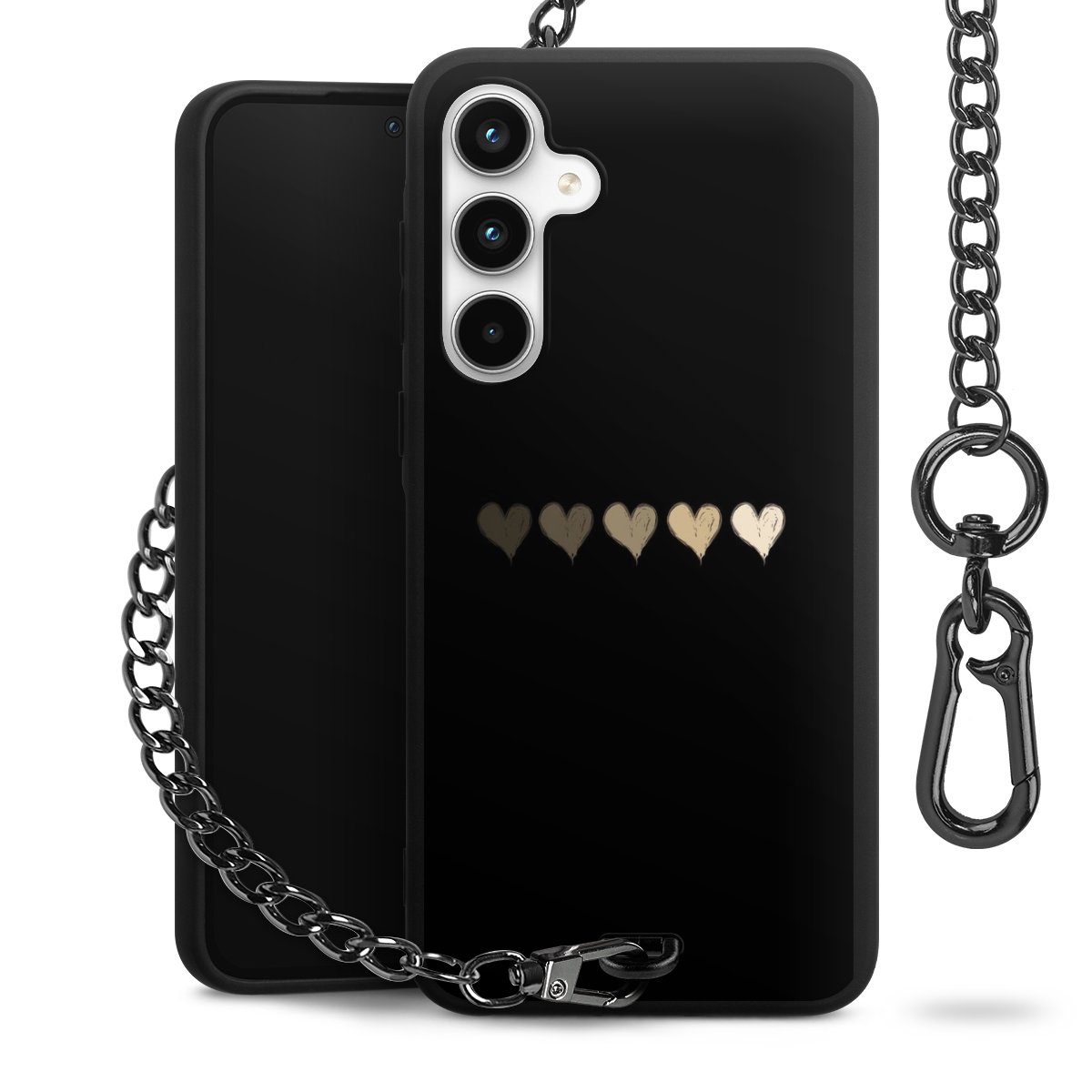 - Mattschwarze Handyhülle mit Metallkette