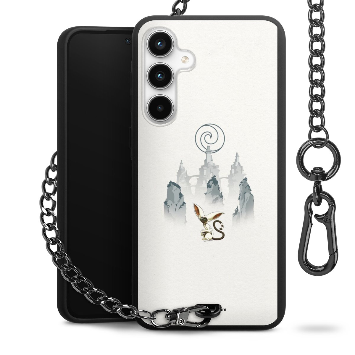- Mattschwarze Handyhülle mit Metallkette