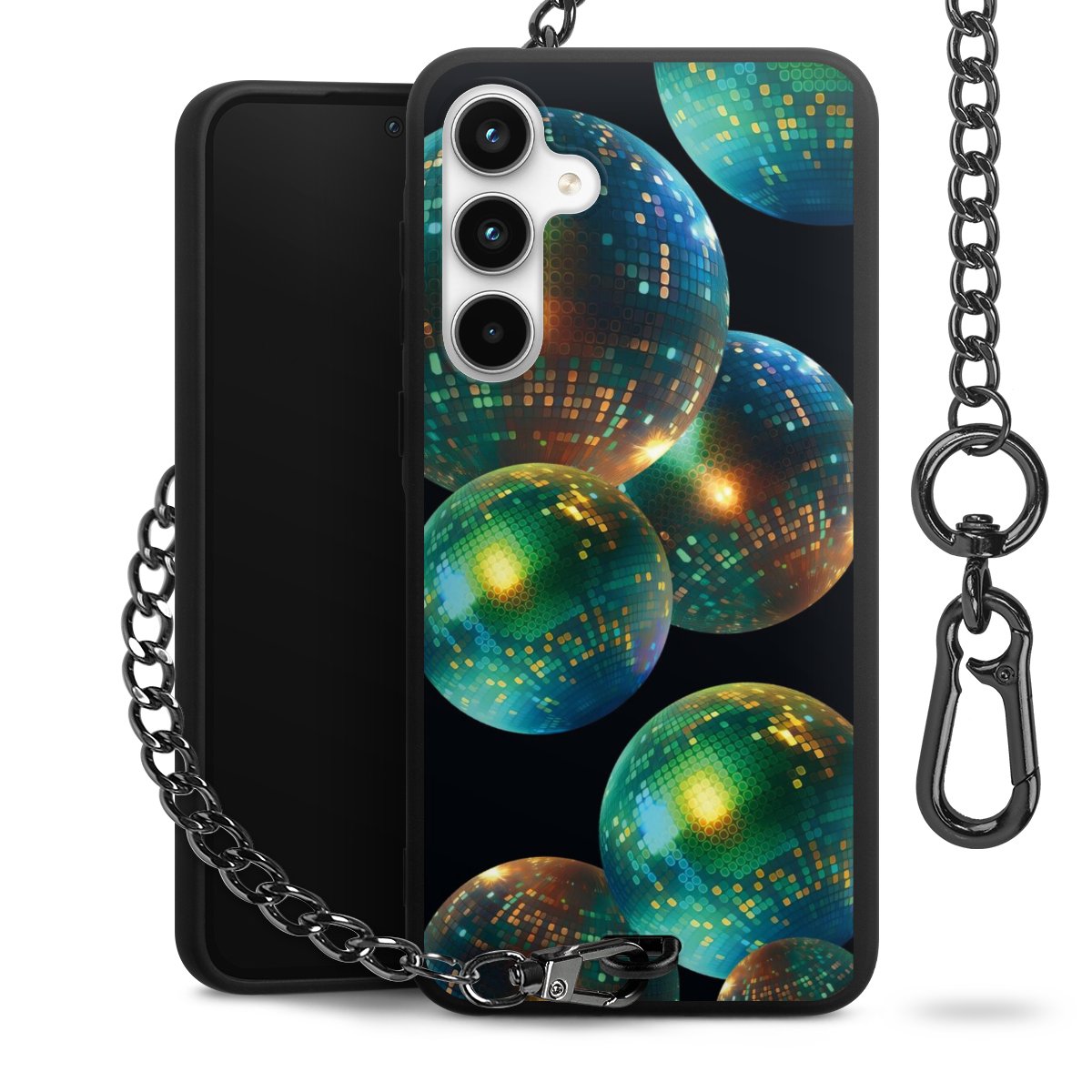 - Mattschwarze Handyhülle mit Metallkette