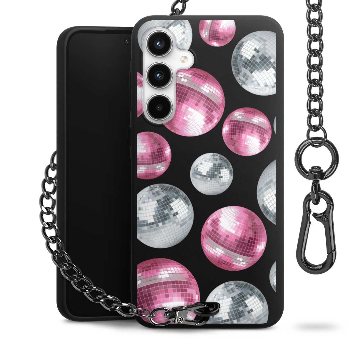 • Mattschwarze Handyhülle mit Metallkette