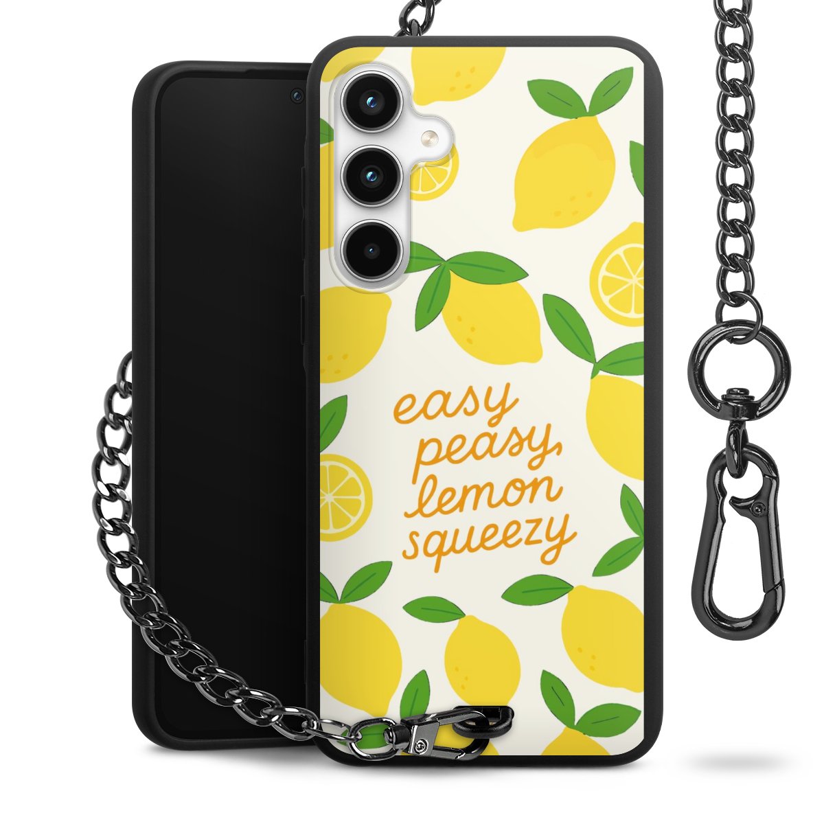 - Mattschwarze Handyhülle mit Metallkette