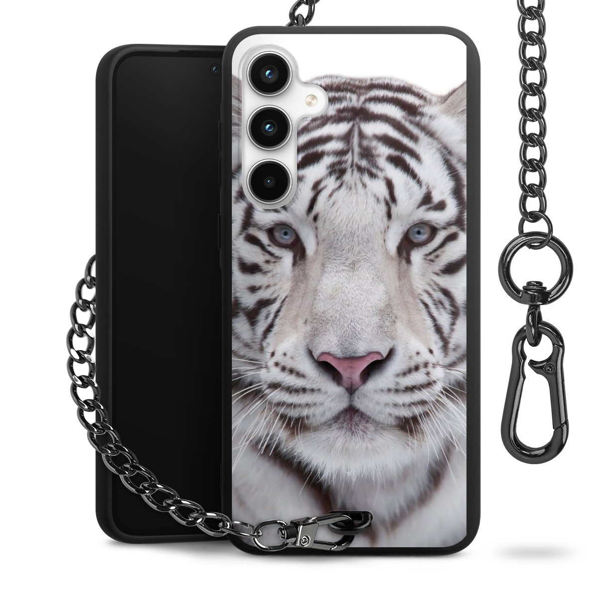 Die mattschwarze Silikon-Handyhülle besteht aus robustem TPU (thermoplastisches Polyurethan). Sie ist flexibel und schützt Dein Smartphone vor Stößen und Kratzern. Die Kette sowie der Karabinerhaken sind aus Metall in Gunmetal-Optik gefertigt. Für dieses Produkt kommen ausschließlich TÜV-geprüfte Materialien zum Einsatz.