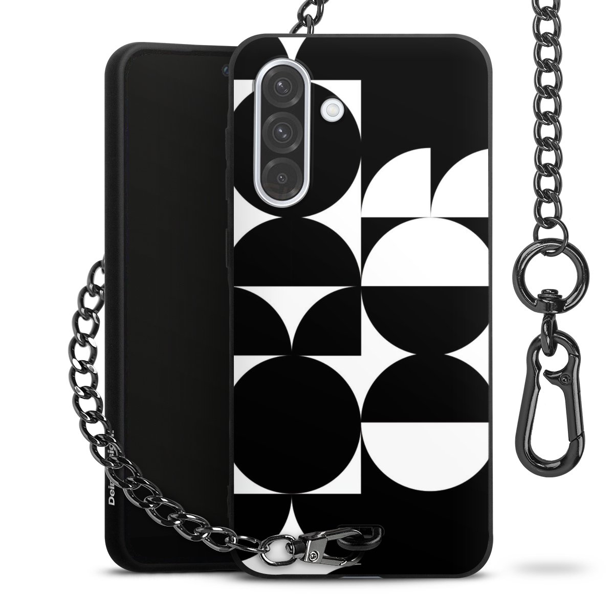 - Mattschwarze Handyhülle mit Metallkette