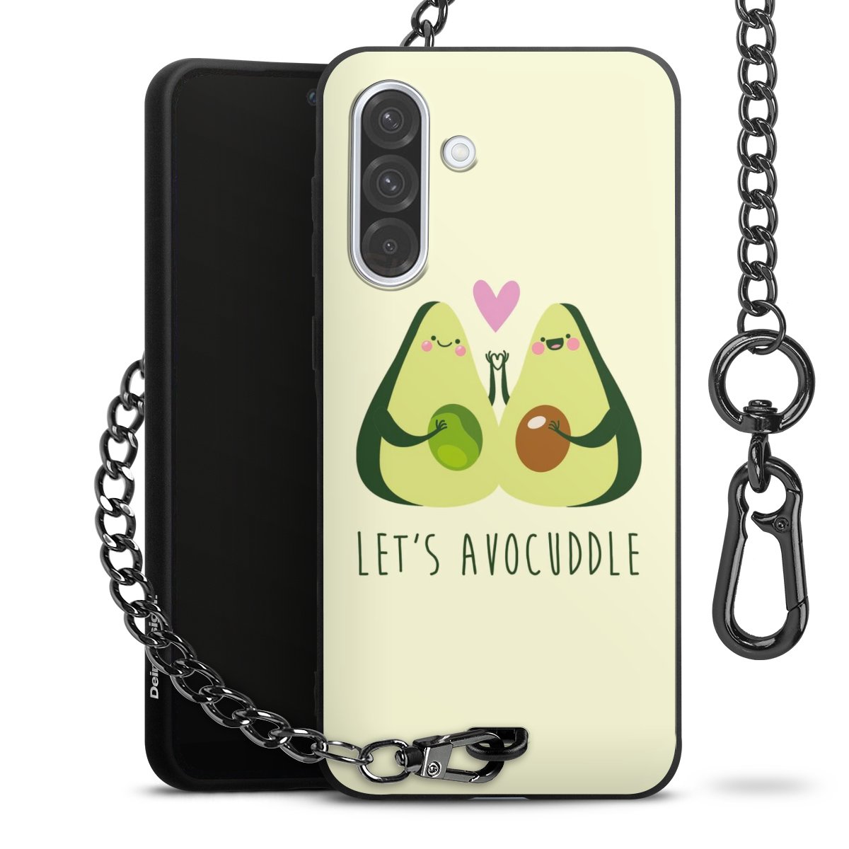 Die mattschwarze Silikon-Handyhülle besteht aus robustem TPU (thermoplastisches Polyurethan). Sie ist flexibel und schützt Dein Smartphone vor Stößen und Kratzern. Die Kette sowie der Karabinerhaken sind aus Metall in Gunmetal-Optik gefertigt. Für dieses Produkt kommen ausschließlich TÜV-geprüfte Materialien zum Einsatz.