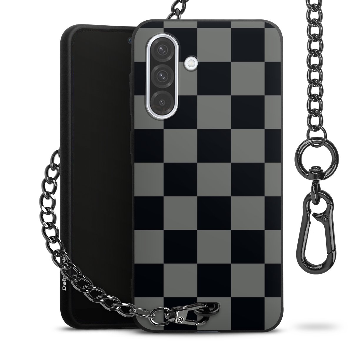 - Mattschwarze Handyhülle mit Metallkette
