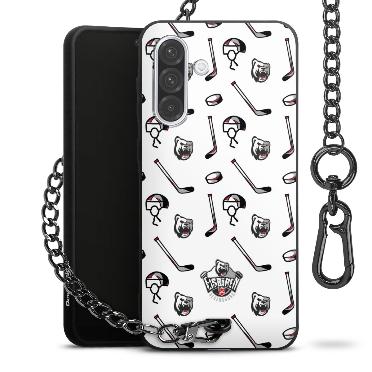 - Mattschwarze Handyhülle mit Metallkette