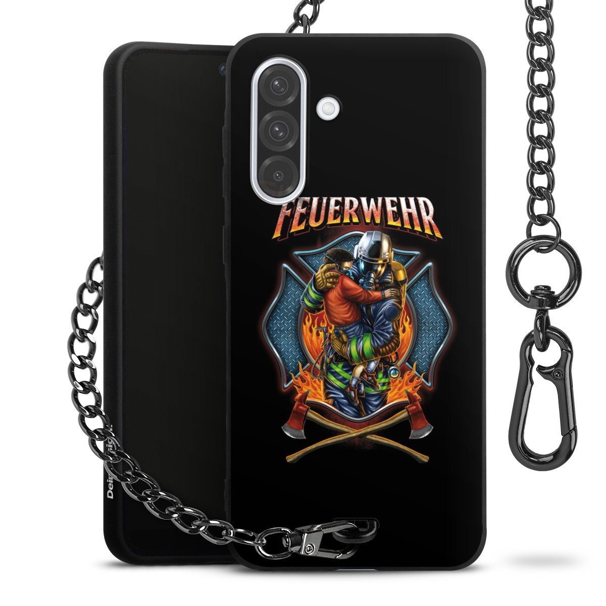• Mattschwarze Handyhülle mit Metallkette