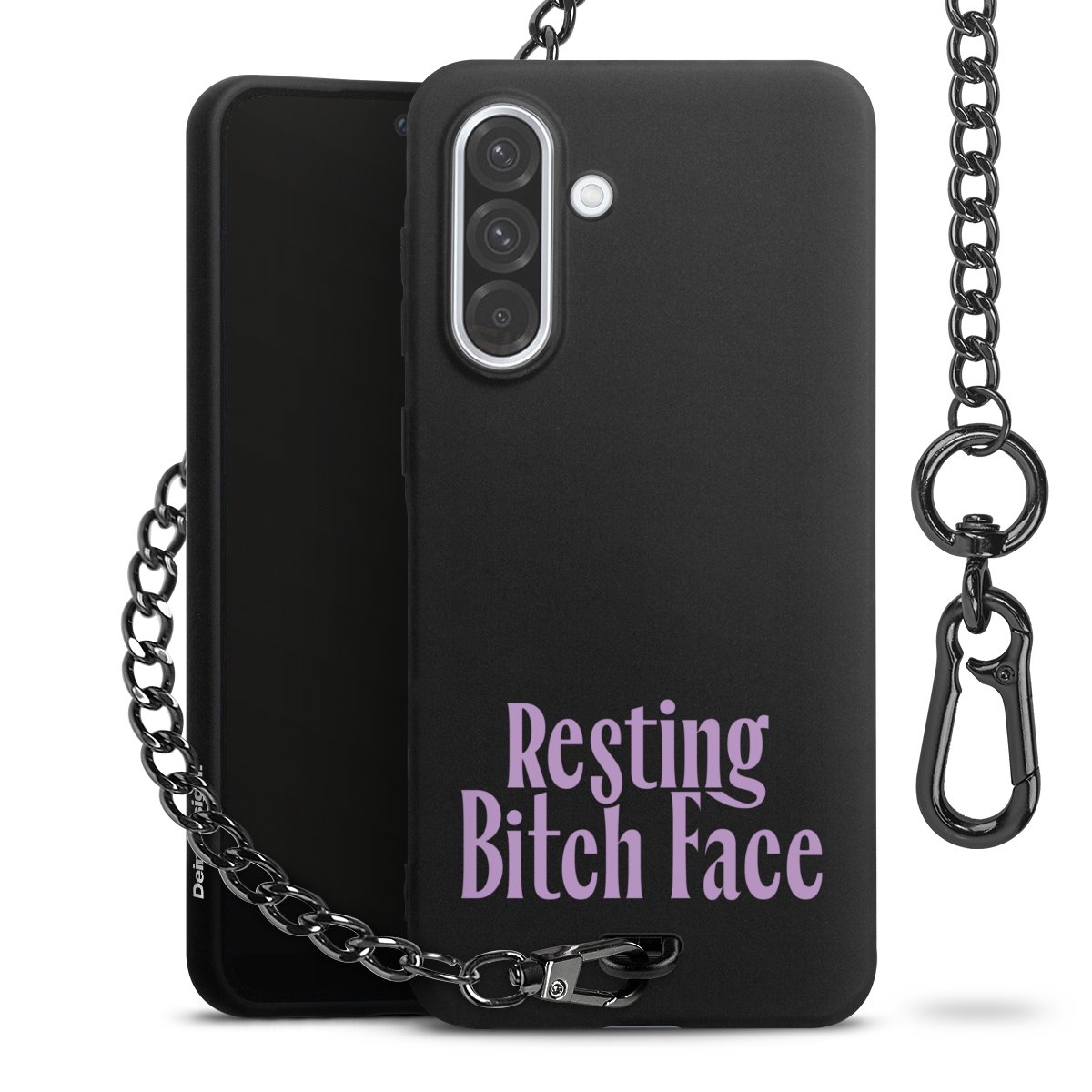 - Mattschwarze Handyhülle mit Metallkette
