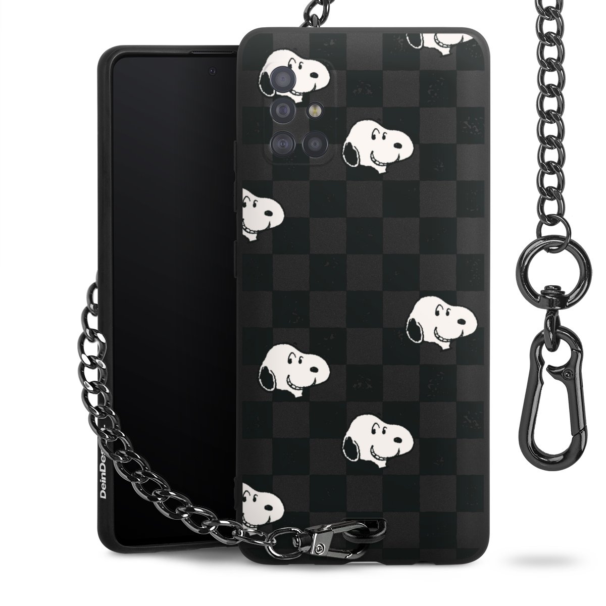 Die mattschwarze Silikon-Handyhülle besteht aus robustem TPU (thermoplastisches Polyurethan). Sie ist flexibel und schützt Dein Smartphone vor Stößen und Kratzern. Die Kette sowie der Karabinerhaken sind aus Metall in Gunmetal-Optik gefertigt. Für dieses Produkt kommen ausschließlich TÜV-geprüfte Materialien zum Einsatz.