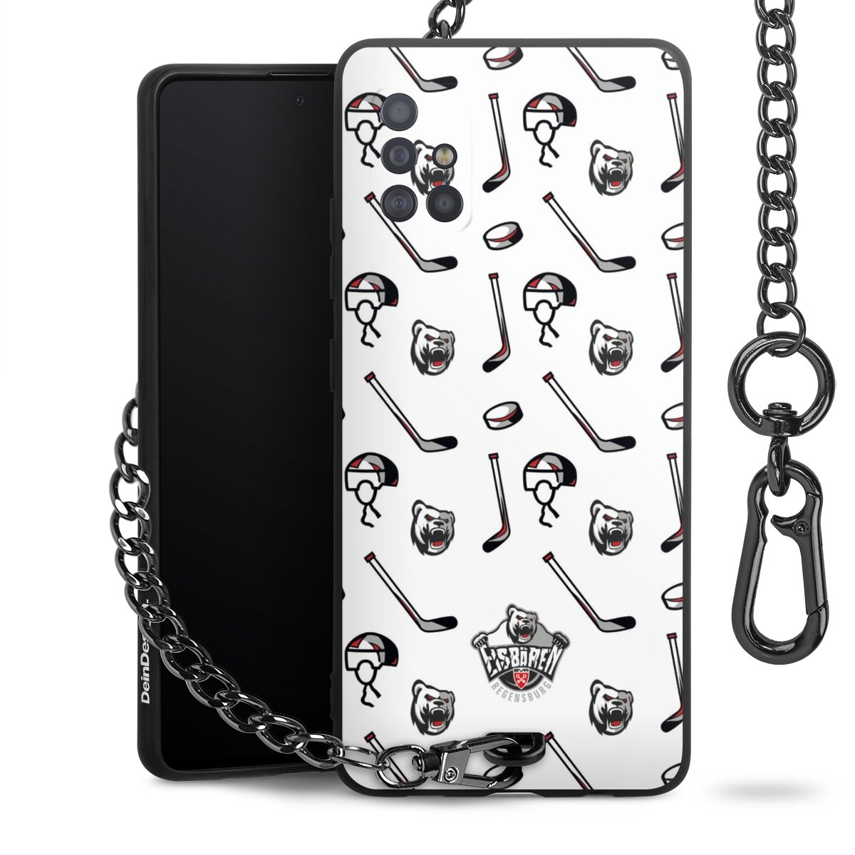 Die mattschwarze Silikon-Handyhülle besteht aus robustem TPU (thermoplastisches Polyurethan). Sie ist flexibel und schützt Dein Smartphone vor Stößen und Kratzern. Die Kette sowie der Karabinerhaken sind aus Metall in Gunmetal-Optik gefertigt. Für dieses Produkt kommen ausschließlich TÜV-geprüfte Materialien zum Einsatz.